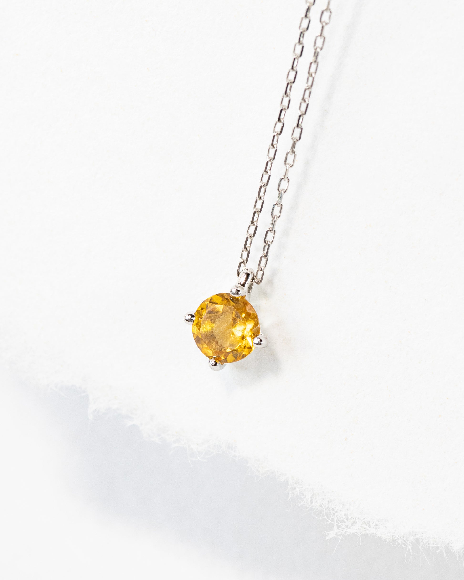 黄金色に輝くシトリンは持ち主に富をもたらす”幸運の石”と言われています。つやつやとしたシトリンを一粒あしらったネックレスは、気兼ねなく毎日を華やかにしてくれるアイテムです。