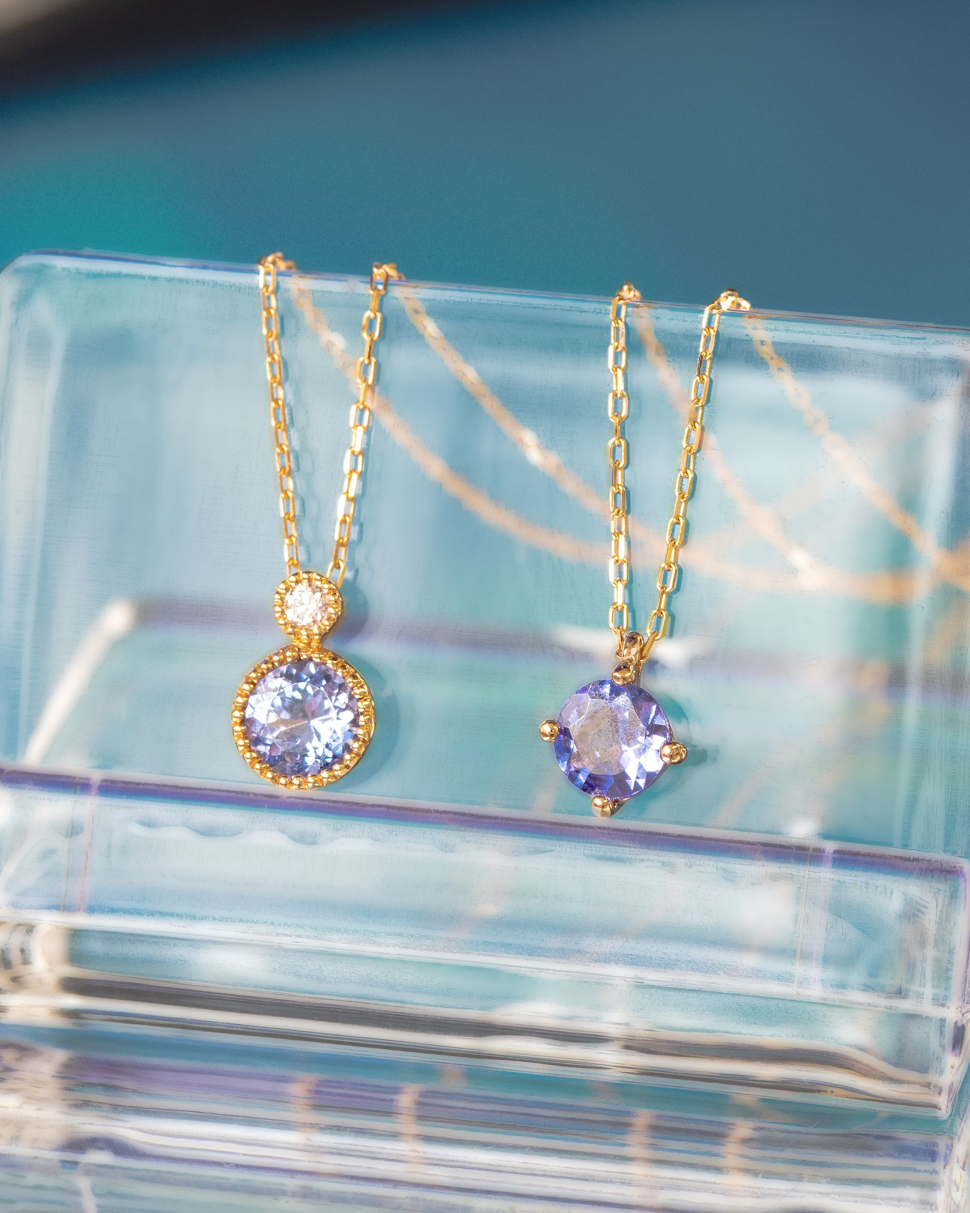 その神秘的なブルーは、気持ちを落ち着かせ、成功へと導いてくれる石だと信じられています。エレガントな雰囲気のタンザナイトを一粒あしらったネックレスは、気兼ねなく毎日を華やかにしてくれるアイテムです。