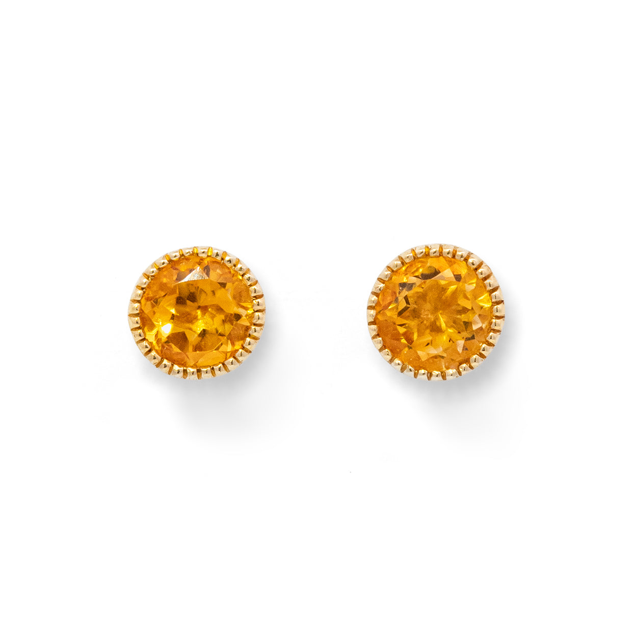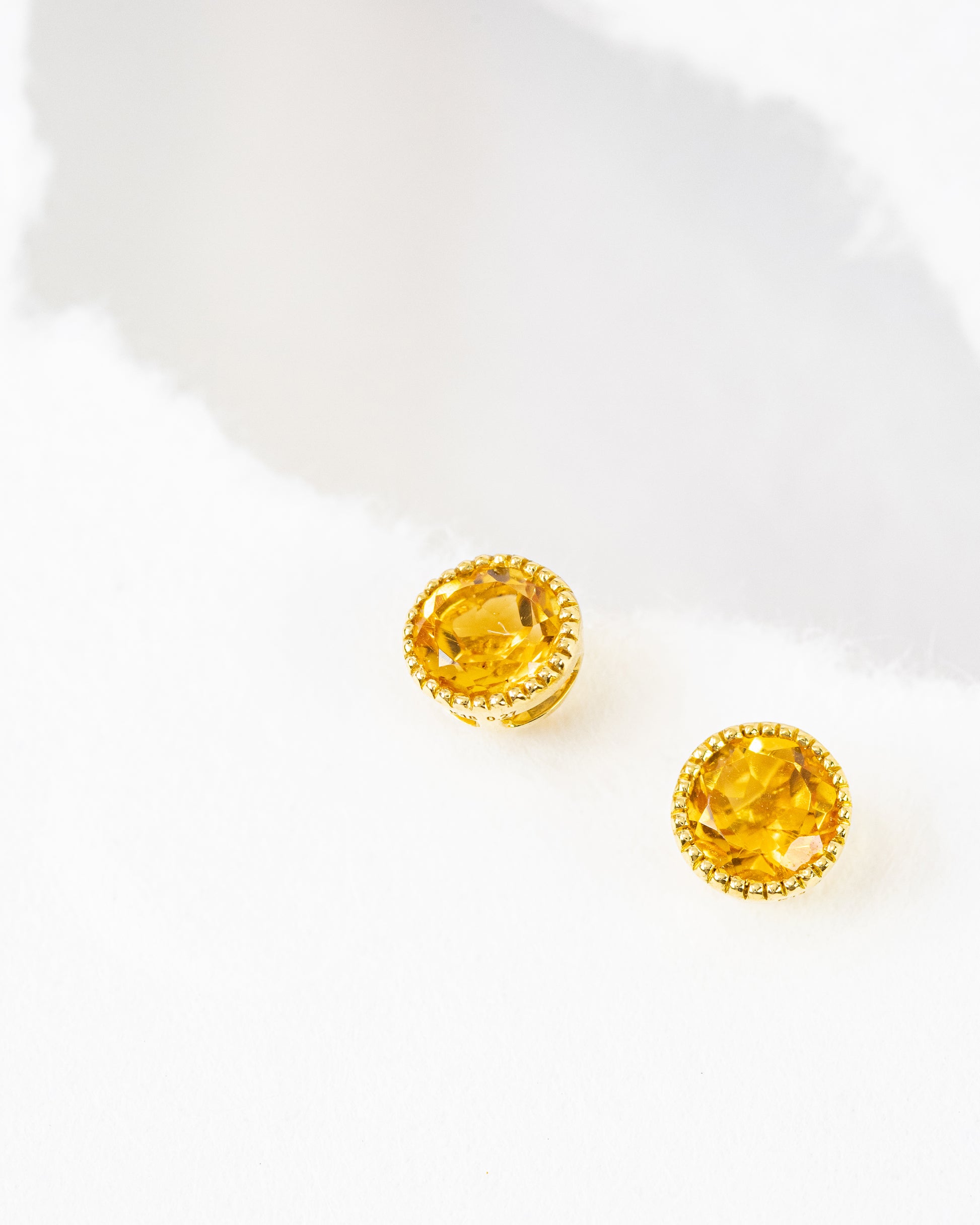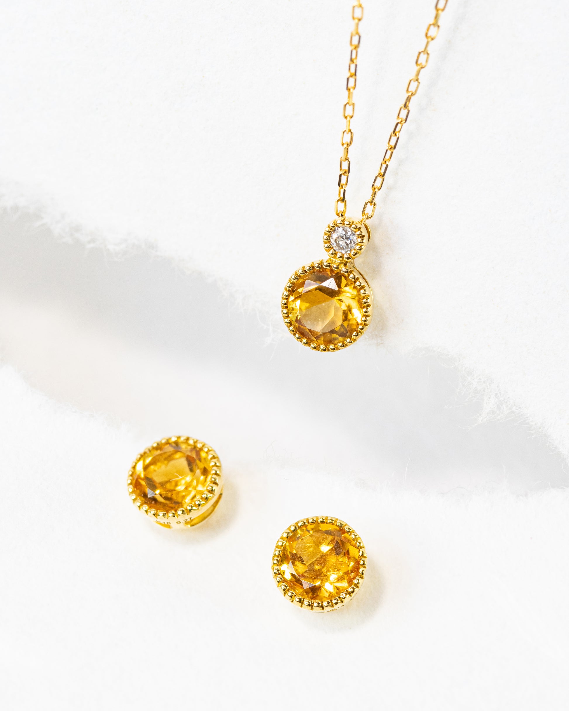 柑橘系の果汁のように瑞々しいシトリンをミル留めにして上品に仕上げました。シーンを選ばすどんなスタイリングにも合うので、毎日身につけたくなるアイテムです。美しく繊細なイメージが大人の女性にぴったり。