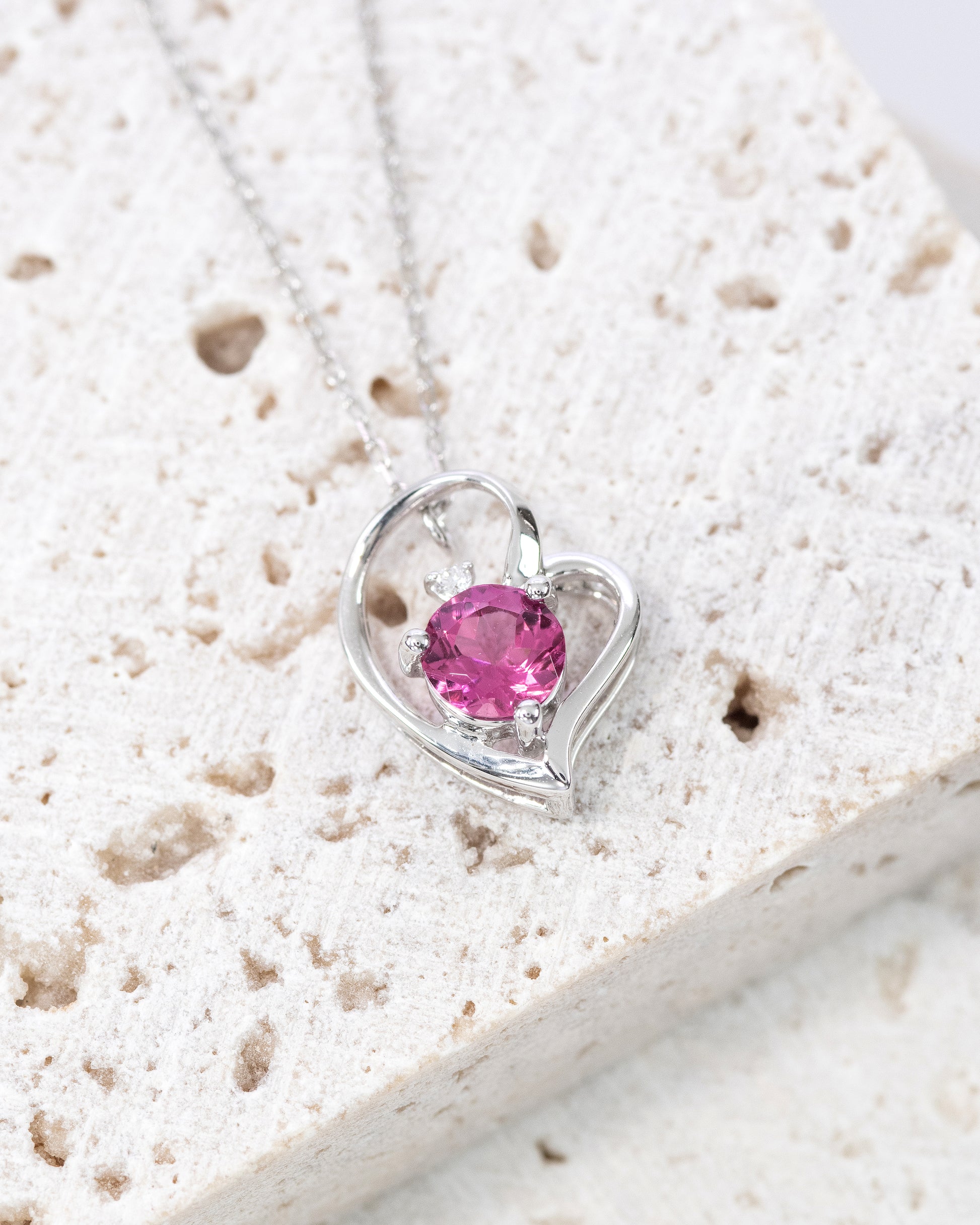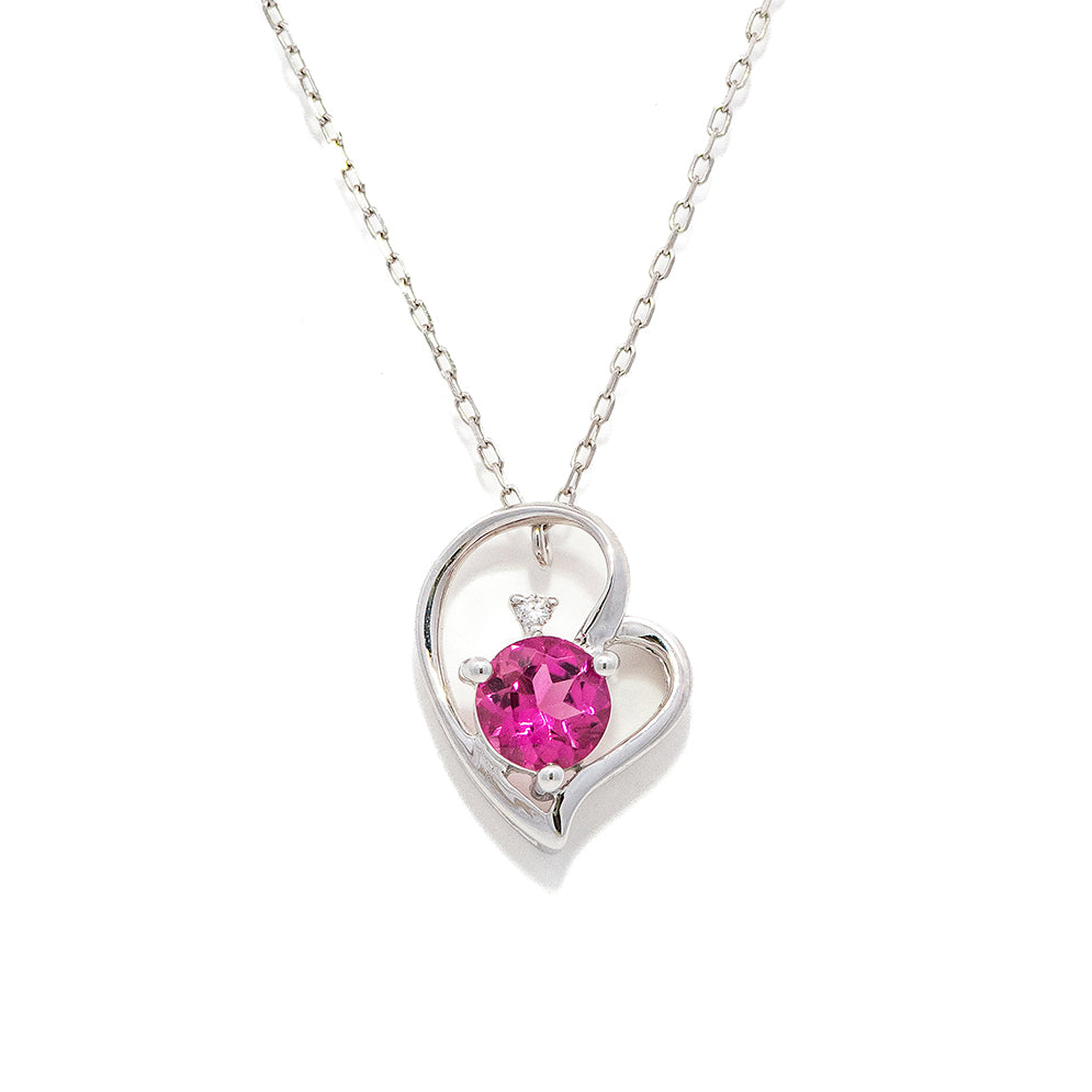 可愛らしくて人気のあるハートモチーフに優しい色合いのピンクトルマリンで、さらに華やかさをプレスさせました。上品さと愛らしさを兼ね備えたデザイン。清楚な女性らしさを引き立てるネックレスです。