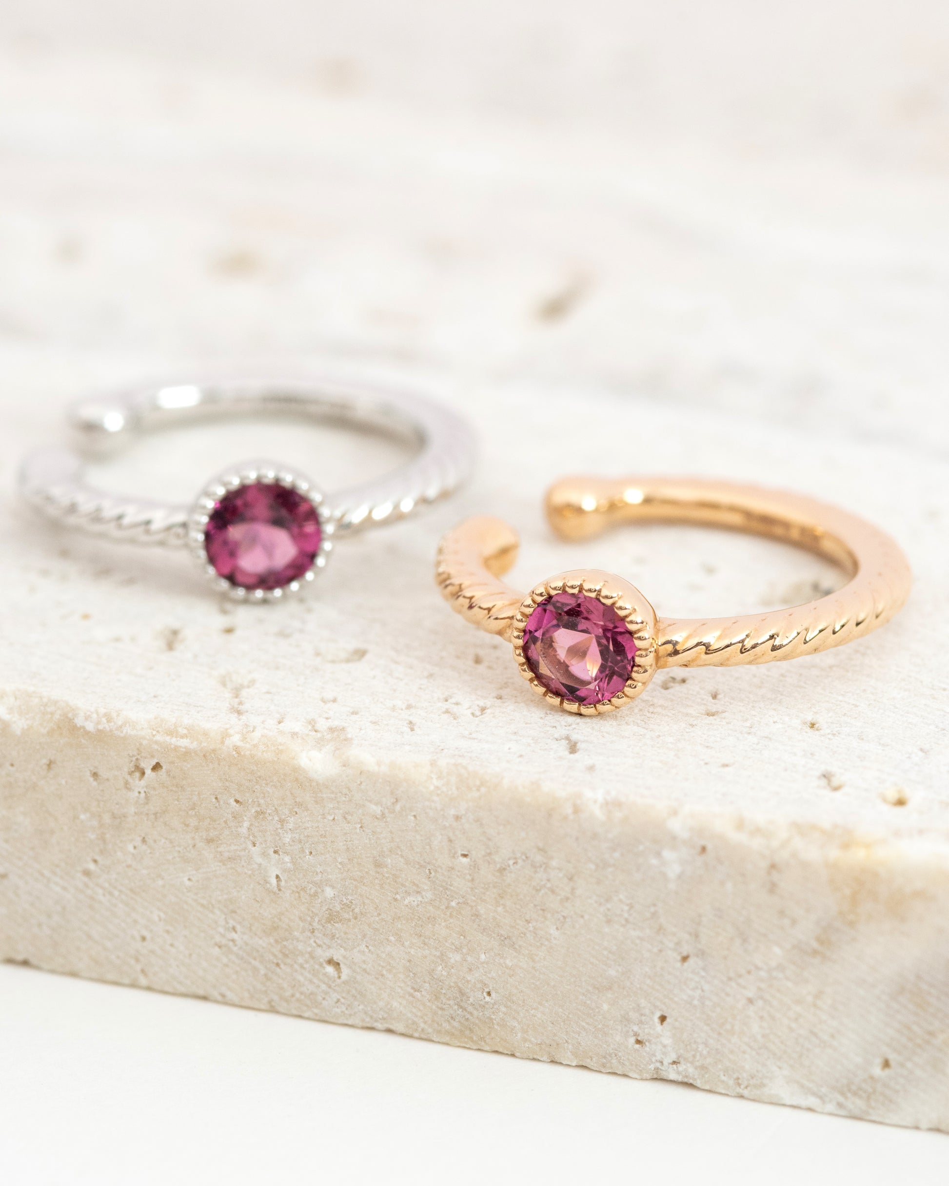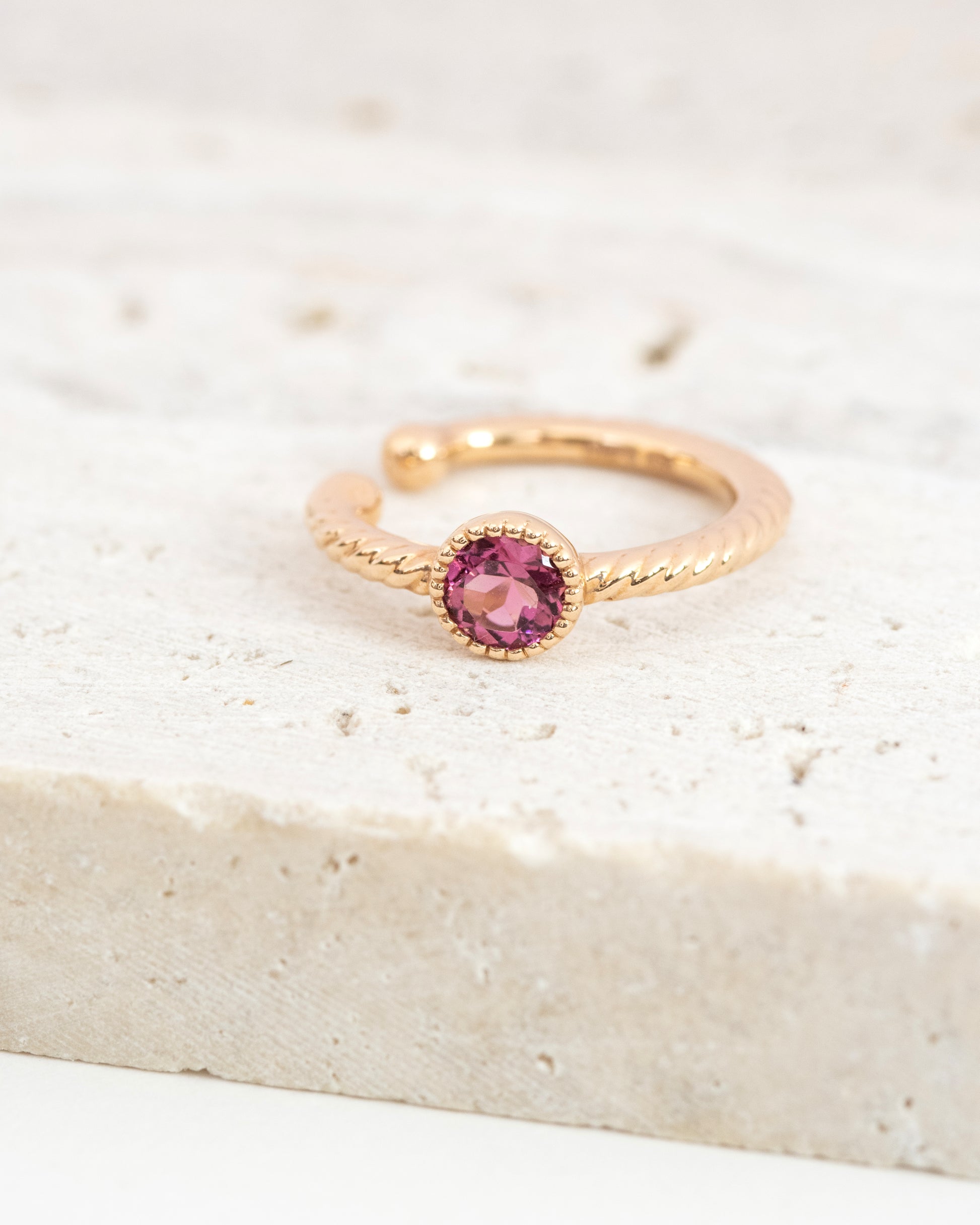 いつものコーディネートにもう少し何かを足したい時につけたくなるイヤーカフ。可憐な色彩が魅力的なピンクトルマリンをミル留めにして上品に仕上げました。