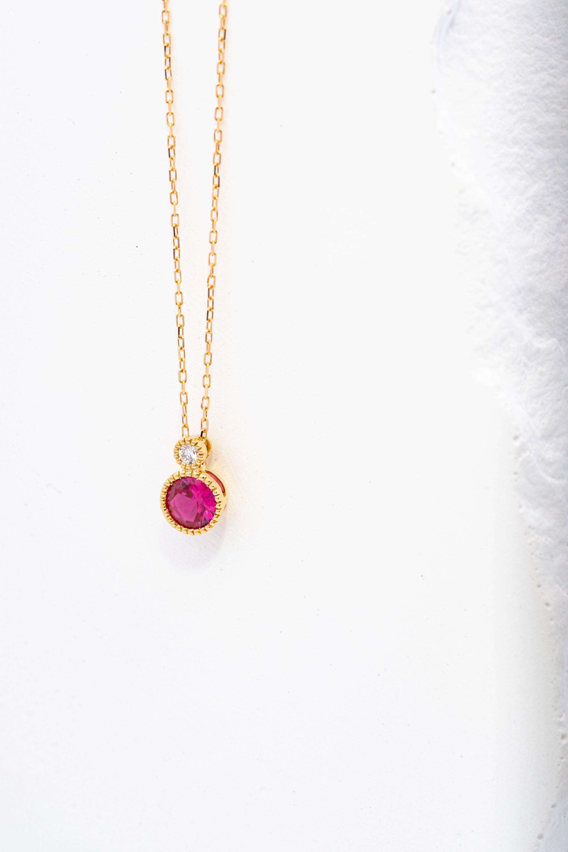 不思議な魅力があるルビーとダイヤモンドの輝きをミル留めにして上品に仕上げました。どんなスタイリングにも合うので、毎日身につけたくなるアイテムです。美しく繊細なイメージが大人の女性にぴったり。