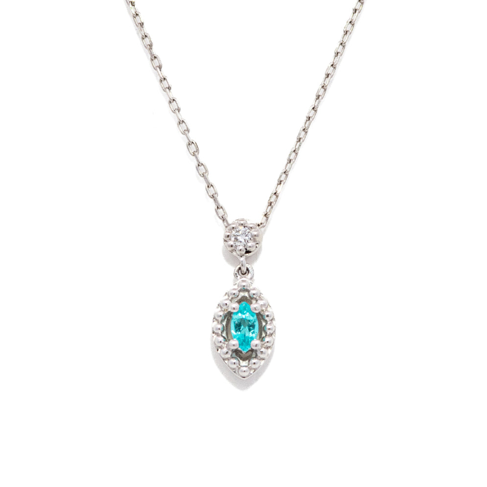 素材:プラチナ900/プラチナ850(チェーン)/パライバトルマリン(0.04ct)/ダイヤモンド(0.01ct)