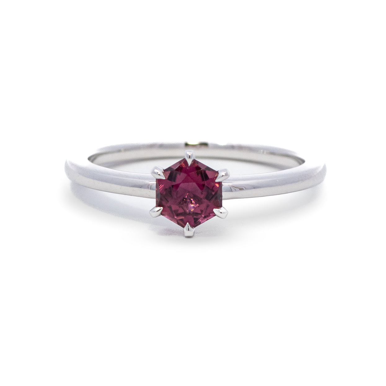 直線的な六角形のカットが独創的な雰囲気をかもしだすピンクトルマリンリング。石の大きさは5mm位あるので存在感は抜群です。ピンクトルマリンの美しい輝きを最大限に生かすシンプルなデザインは、絶妙なバランス感でいつものコーディネートをランクアップさせてくれます。