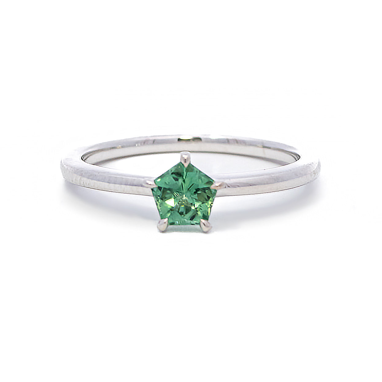 直線的な五角形のカットが独創的な雰囲気をかもしだすグリーントルマリンリング。