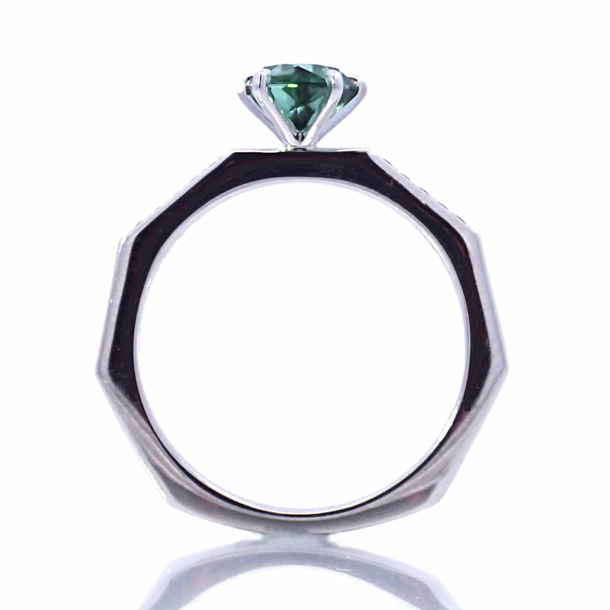 直線的な五角形のカットが独創的な雰囲気をかもしだすグリーントルマリンリング。
